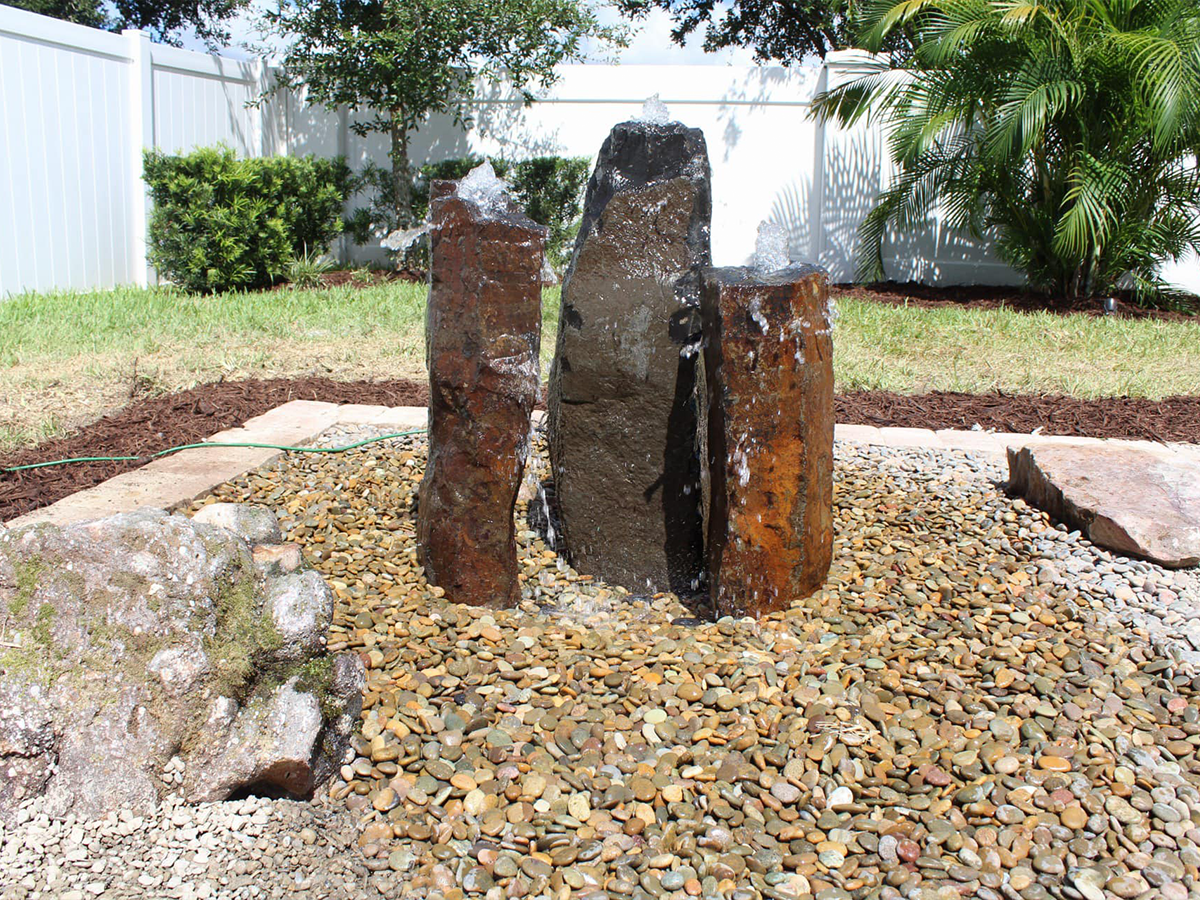 The cost of installing a fountain water feature here in Central Florida is around $8k for medium-sized stone fountain. Of course, there are different tiers of fountains, and you can install something as expensive as $15k if you want to.